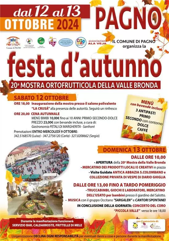 Descrizione Pagno - 13 OTTOBRE 2024 - FESTA D'AUTUNNO - 20^ MOSTRA ORTOFRUTTICOLA DELLA VALLE BRONDA.Programma della manifestazione.