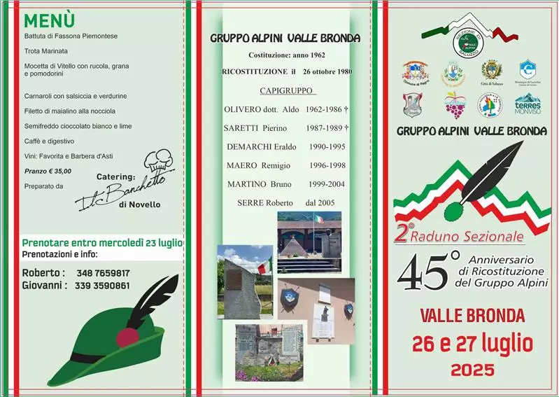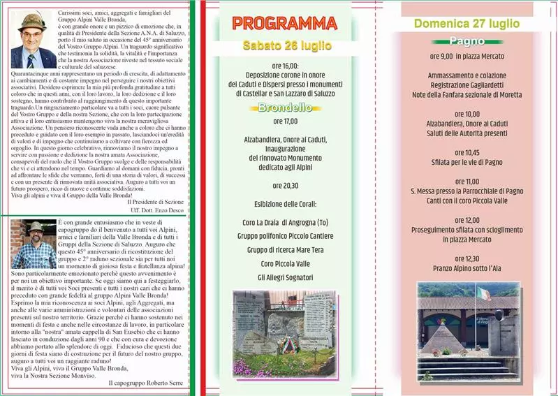 Descrizione 45^ Anniversario di ricostituzione del Gruppo Alpini Valle Bronda - 2^ Raduno Sezionale Programma allegato