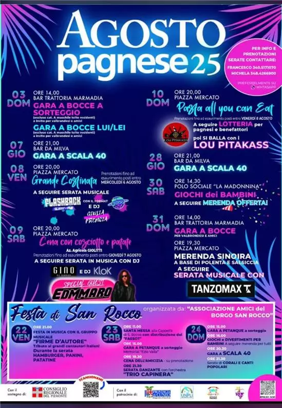 Descrizione "Agosto Pagnese 2025" - Festeggiamenti patronali dal 08 al 31 agosto 2025. Programma dei festeggiamenti.